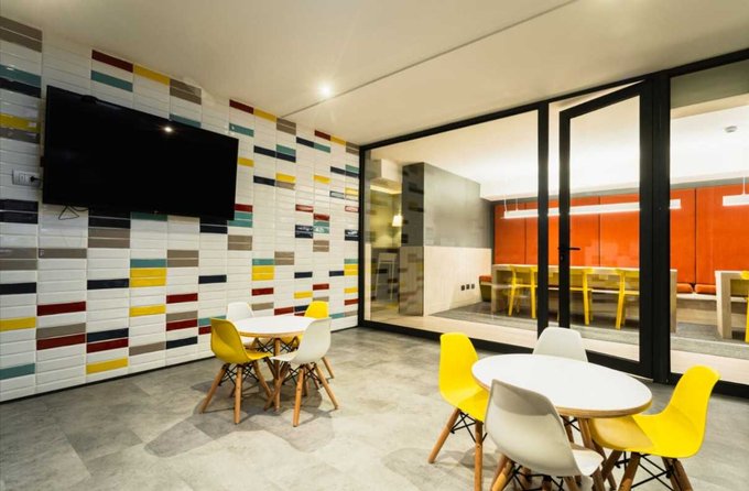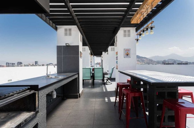 SANTA ISABEL 55. A pocos minutos a pie de la estación Santa Isabel L5, tenemos el edificio Santa Isabel 55, con cómodas áreas diseñadas para su disfrute, contamos con seguridad 24/7, servicio de recarga de agua purificada gratuita, lavandería, sala wifi, Salón Gourmet, gimnasio y Quinchos.