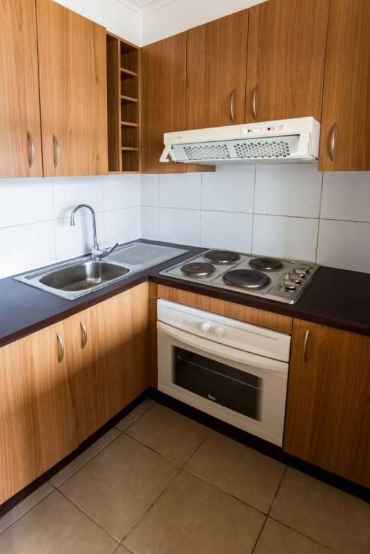 - Cocina equipada con encimera, horno y campana.