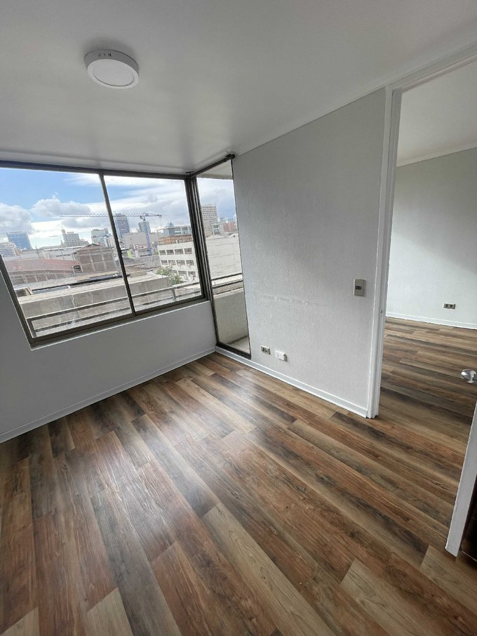 Se arrienda Céntrico Departamento 1 Dormitorio 1 Baño, Comuna de Santiago Centro el departamento con cocina a gas, piso vinílico living comedor, home office y espacio lavadora, el edificio cuenta con conserjería 24/7, Gimnasio, Sala Multiuso, cercano a metro Parque de Almagro y Universidad de chile