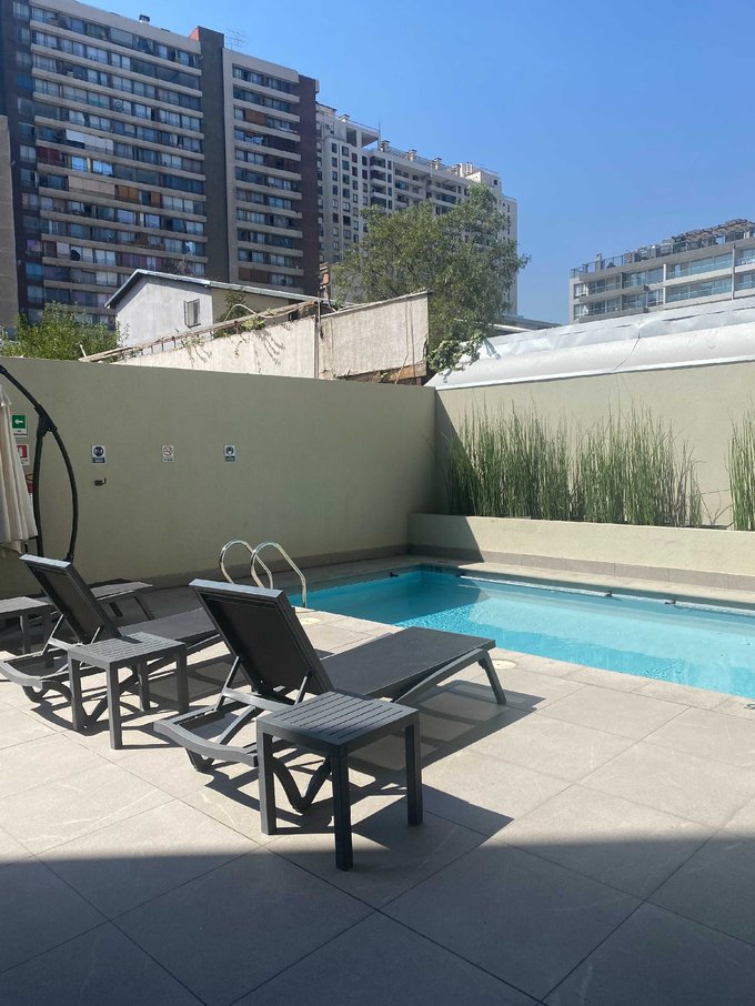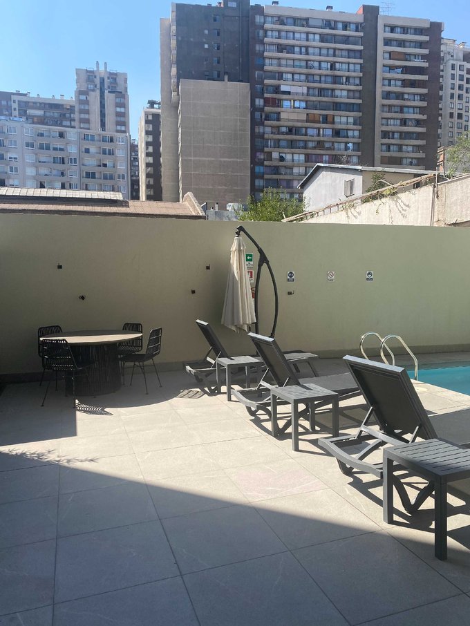 Edificio cuenta con Gimnasio equipado, sala multiuso, salón Gourmet con sala de estar, piscina en primer piso, quincho, bicicletero , además de tener vigilancia 24/7 y conserjería .