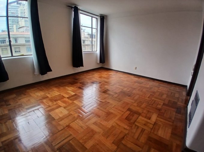 Amplio e iluminado departamento en pleno Paseo Bulnes, a solo 3 cuadras del Metro La Moneda. Especial para persona sola o pareja.