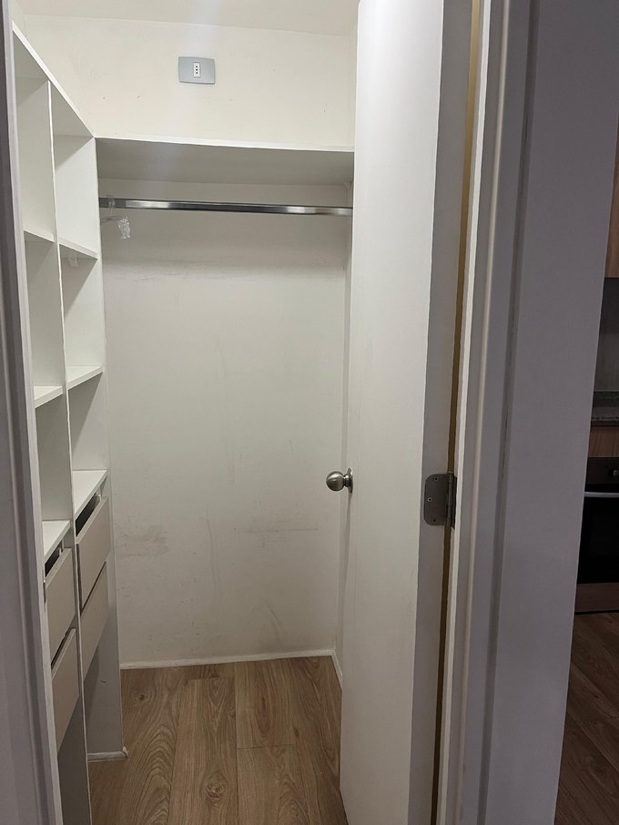 Walk in closet, dormitorio y sala con luz natural, balcón.