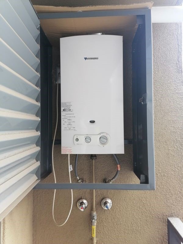 Living con balcón, cocina americana, con encimera de 2 platos a gas, horno empotrado eléctrico, almacenamiento, mesada, closet tipo despensa, instalación de lavadora, espacio para refrigerador.