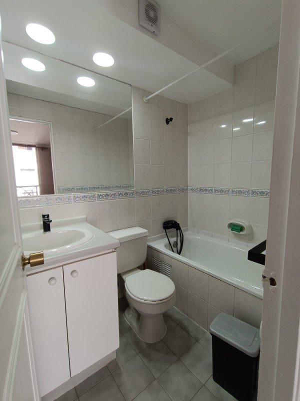 El departamento cuenta con 2 baños y 2 privados, ideal para quienes buscan comodidad y privacidad. Su orientación poniente garantiza luz natural durante la tarde. Los gastos comunes son aproximadamente $90,000 pesos.