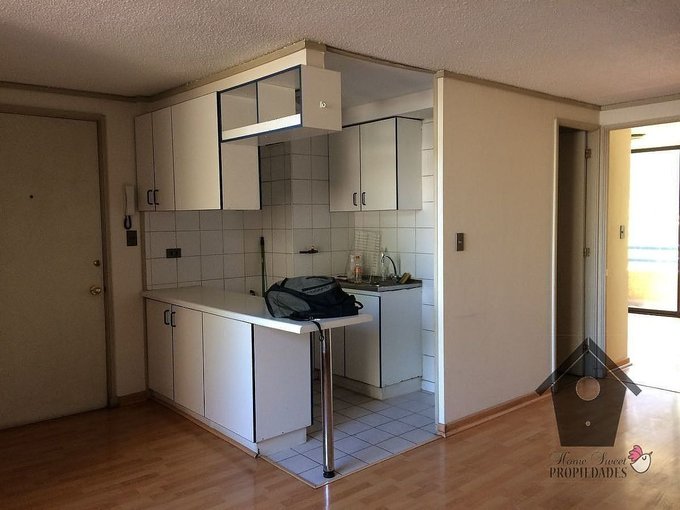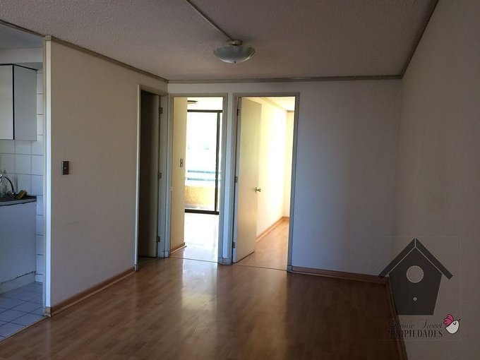 Piso flotante en living comedor y dormitorios, cerámica en el área de la cocina y el baño. Cocina amoblada, Ambos dormitorios con closet, agua caliente de Caldera, Se arrienda con cortinas y lámparas.