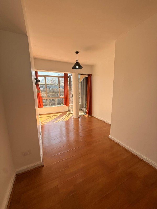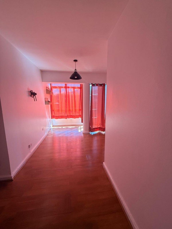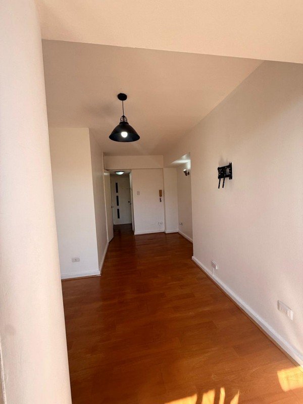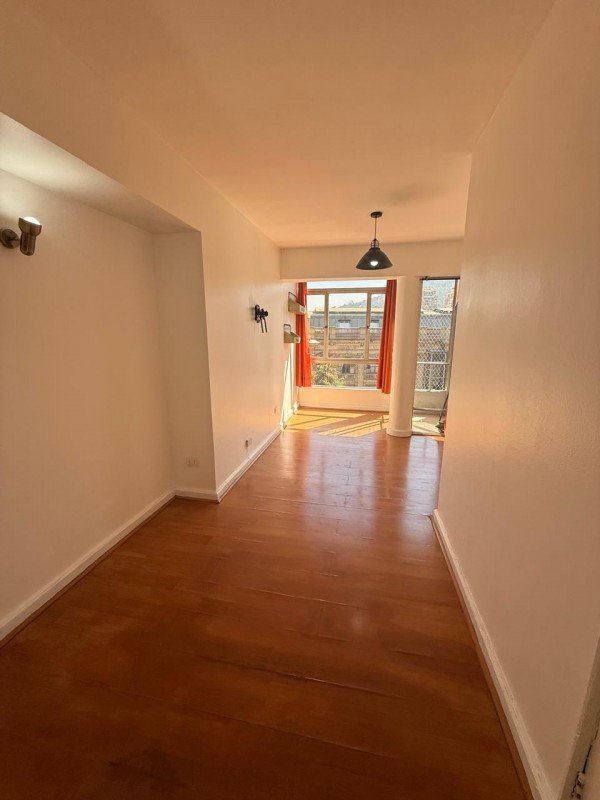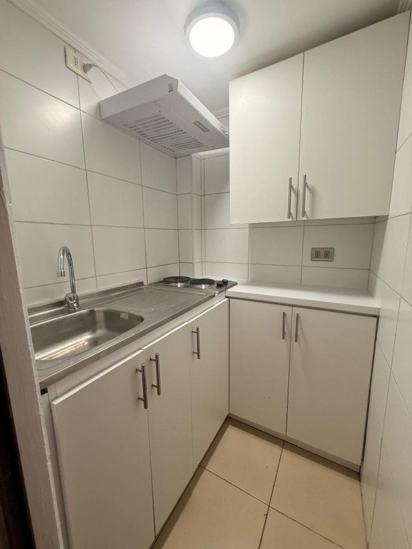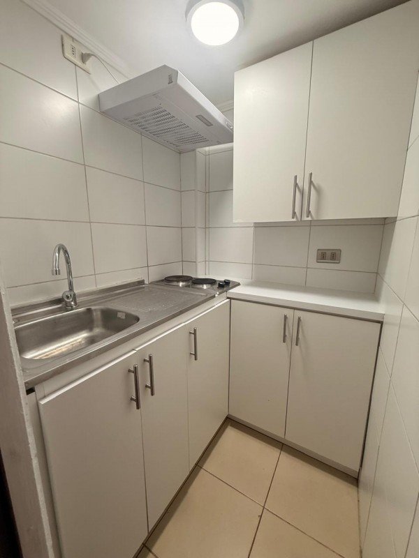 Departamento de 25mts2, distribuido en 1 dormitorio (un ambiente), 1 baño completo con conexión a lavadora (incluye lavadora), cocina cerrada totalmente amoblada, equipada con encimera, campana de fibra de vidrio, agua caliente con termo eléctrico, ventanales, closet, ubicado en piso 6, pisos flotante en todo el departamento, sin estacionamiento ni bodega, orientación Norte.