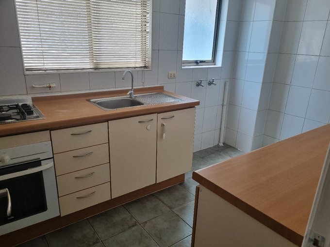 Cocina amoblada y equipada con cocina encimera y horno empotrado, lavadero integrado a cocina