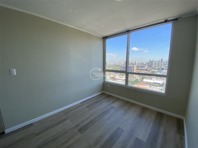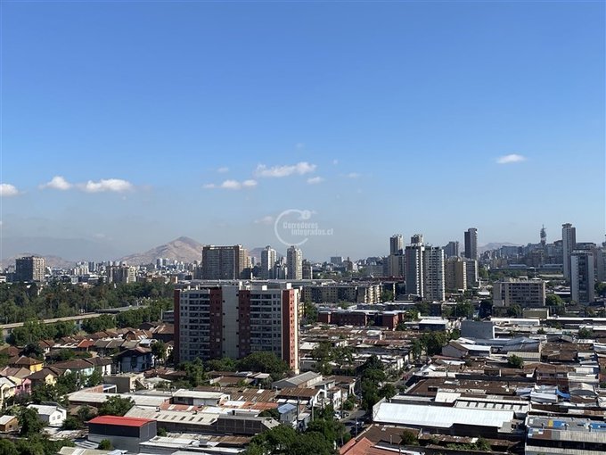 En pleno corazón de Santiago y a pasos del metro, se arrienda este luminoso departamento de dos dormitorios y un baño, ubicado en el piso 19 de un edificio moderno del año 2014. Desde sus ventanales se disfruta una vista increíble sobre la ciudad, que se transforma con la luz de cada día.