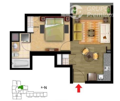 El departamento cuenta con 1 dormitorio con baño en suite, living-comedor y terraza, también cuenta con una bodega en el subterráneo, ideal para una persona o pareja. Además, su orientación oriente permite disfrutar de buena iluminación natural durante gran parte del día.