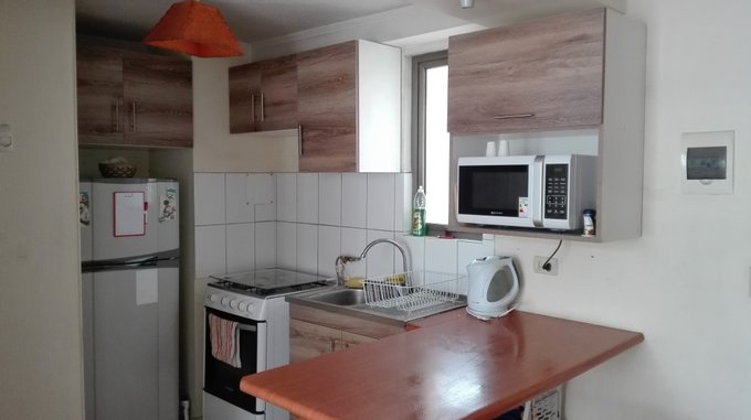La comuna de Santiago es conocida por su vibrante vida urbana, con acceso a una amplia oferta cultural y gastronómica. Este departamento no se queda atrás en cuanto a comodidades. **Interiores**: - Barra desayunador - Cocina - Sala de estar - Closets. **Servicios Comunes**: - Ascensor - Estacionamiento para visitas - Gimnasio - Parque infantil - Salón de eventos. **Electrodomésticos y Servicios**: - Refrigerador - Lavandería común - Sala multiusos. **Conectividad y Seguridad**: - Seguridad las 24 horas - Acceso a internet - Agua potable - Gas natural - Línea telefónica - TV por cable.