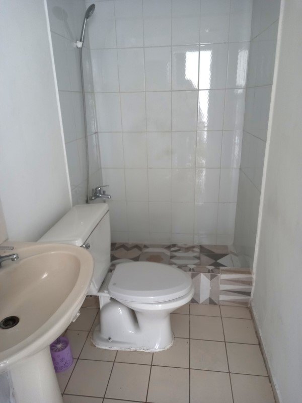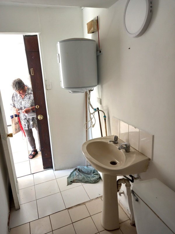 Un baño de muy buen tamaño, termo y conexión a lavadora