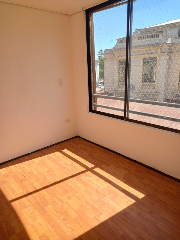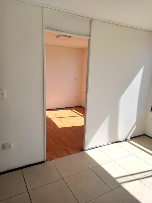 Un dormitorio grande ( cama de dos plazas mas veladores), closet grandes, luminoso