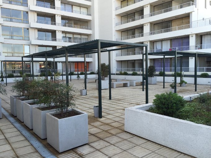 - Exterior: Accesos controlados las 24 horas, Estacionamiento de visitas, Gimnasio, Piscina, Portón automático, Quincho, Sala Multiuso, Jardín posterior
