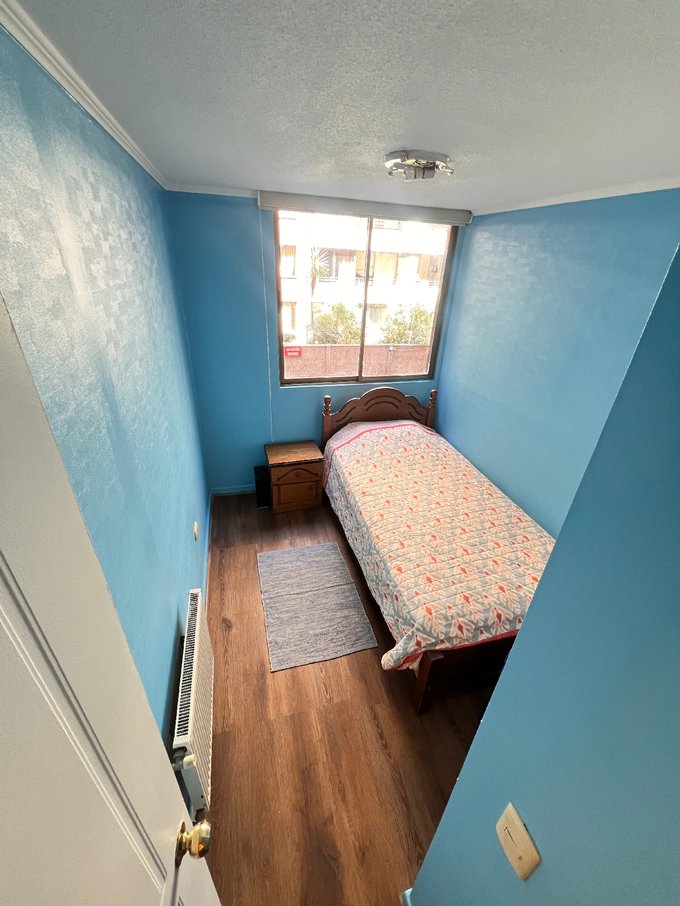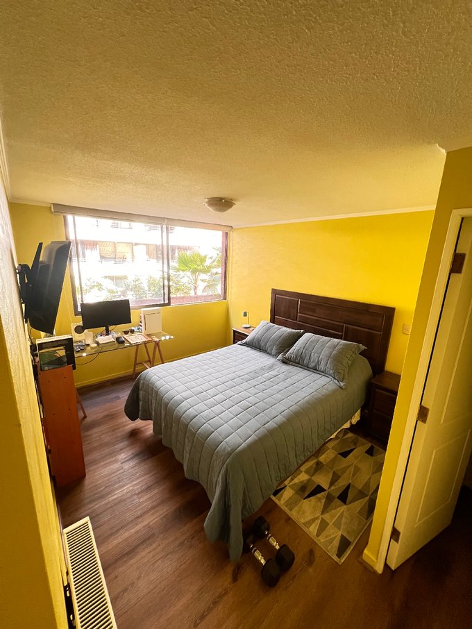 El departamento se arrienda semi-amoblado, incluyendo refrigerador, dos camas de una plaza y media y mesa de comedor con seis sillas. Además, dispone de balcón y logia independiente.