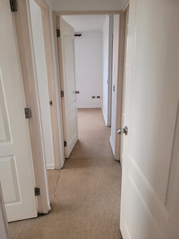 Ventanas de aluminio, living comedor con piso flotante, dormitorios alfombrados, cocina y baños con cerámica.