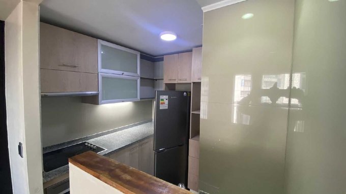 Posee living comedor, cocina, incluye refrigerador con encimera, vitrocerámica completamente amoblada; 2 dormitorios, el principal en suite, con la disponibilidad de una cama de 2 plazas y un closet adicional, el segundo dormitorio posee una cama empotrada y escritorio, 1 baño de visita y logia, con conexión a la lavadora.