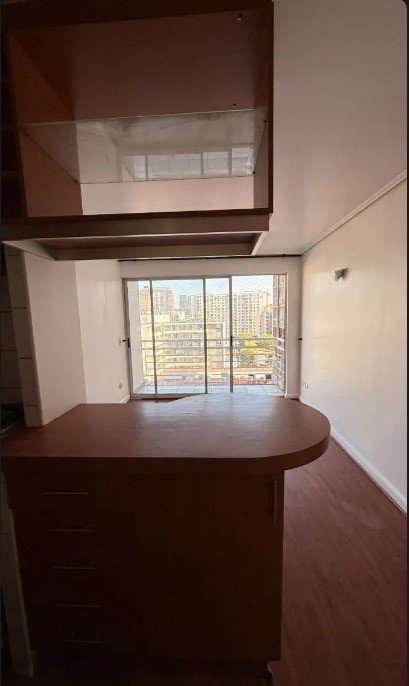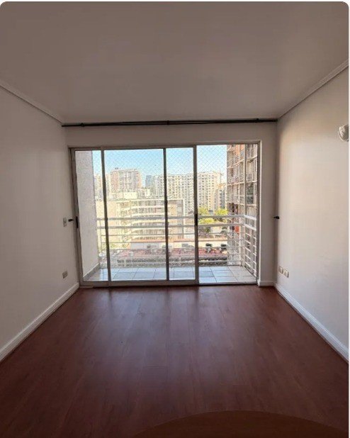 El área principal cuenta con un espacio de living que se conecta a través de ventanales con salida a un balcón, permitiendo vistas al entorno urbano.