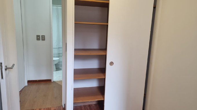 Un dormitorio amplio y un dormitorio más pequeño para cama de 1 plaza, con closet. Living-comedor y dormitorios con pisos flotantes, Baños con tina, espejo y accesorios. Terraza continua larga y cómoda.