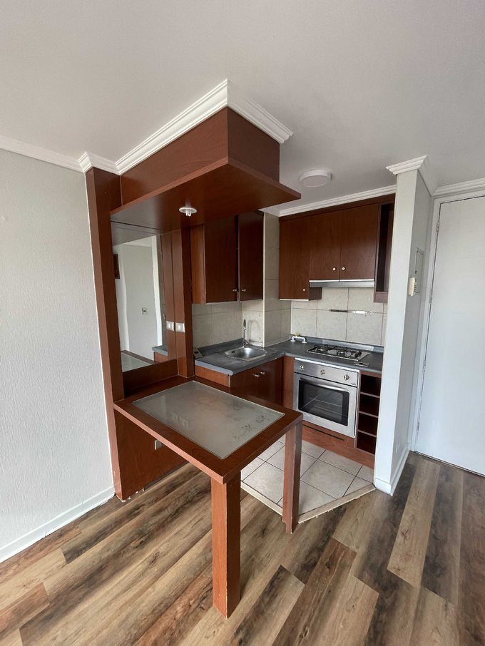 Se arrienda Céntrico Departamento 1 Dormitorio 1 Baño, Comuna de Santiago Centro el departamento con cocina a gas, piso vinílico living comedor, home office y espacio lavadora, el edificio cuenta con conserjería 24/7, Gimnasio, Sala Multiuso, cercano a metro Parque de Almagro y Universidad de chile