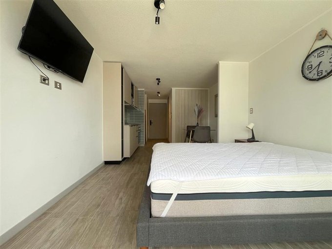 Moderno departamento estudio completamente amoblado, listo para habitar, ubicado en pleno Barrio Universitario, uno de los sectores más demandados de Santiago por su excelente conectividad, cercanía a universidades y activa vida urbana. Ideal para estudiantes o profesionales jóvenes que buscan comodidad y ubicación estratégica.