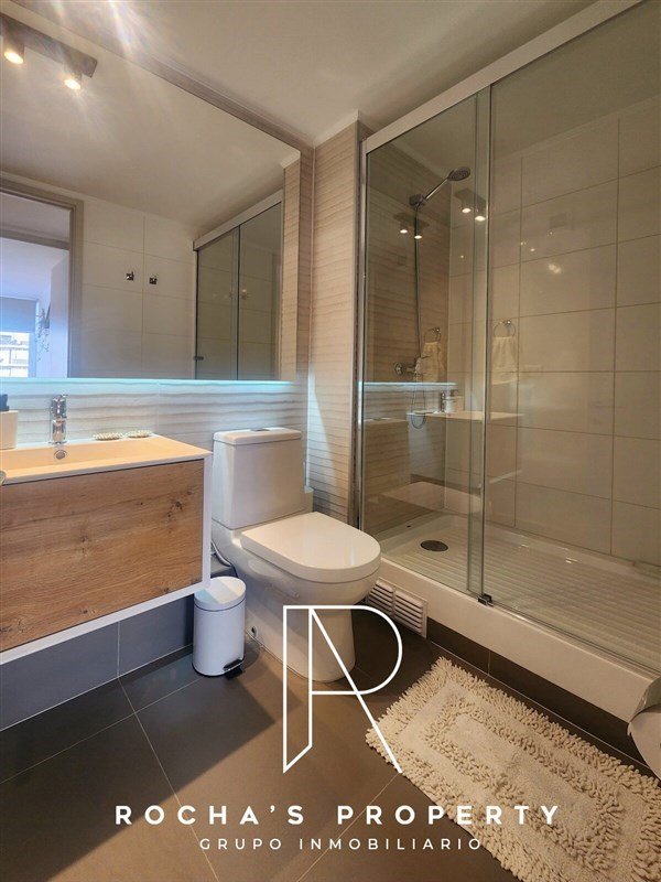 Baño espacioso con shower door.