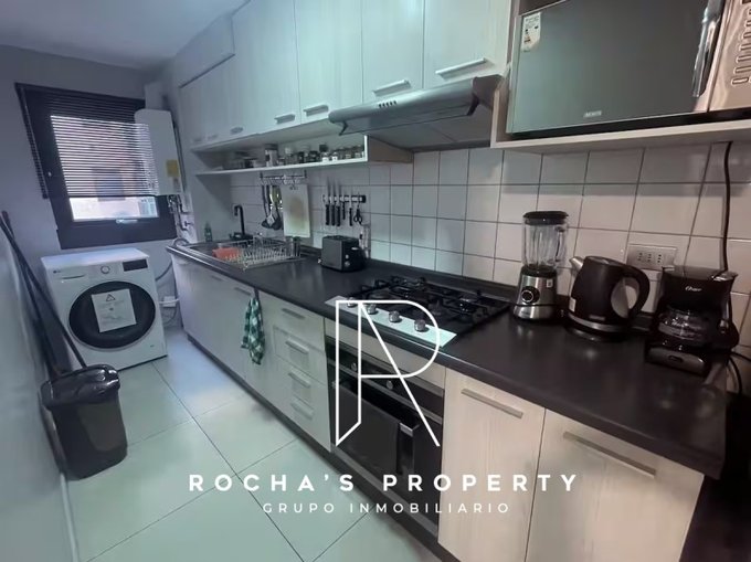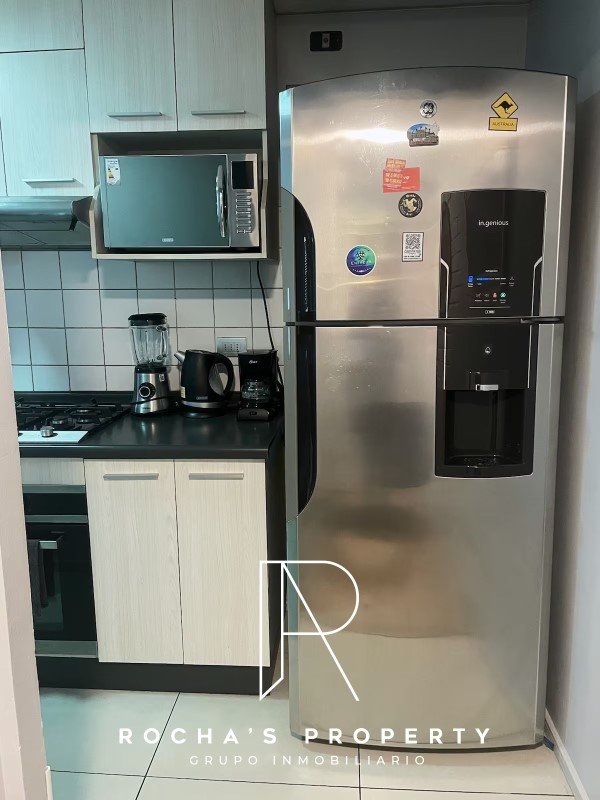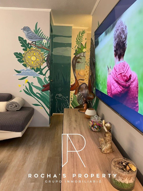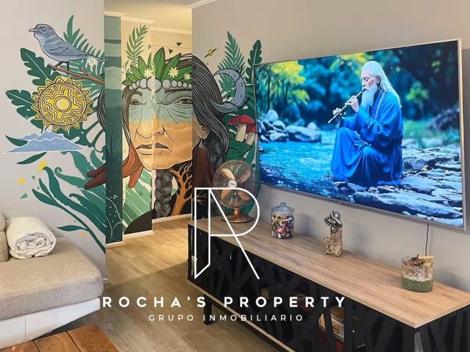 Al ingresar, te recibirán un luminoso living y una cocina completamente equipada, perfectos para disfrutar de momentos en familia o con amigos. Desde el living, accede a un agradable balcón con vista a los jardines, donde podrás relajarte y disfrutar del aire fresco. Las paredes del departamento están adornadas con obras de artistas locales y recuerdos de viajes, creando un ambiente fresco y lleno de energía.