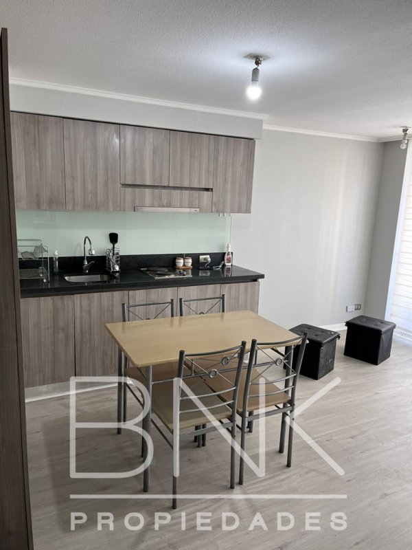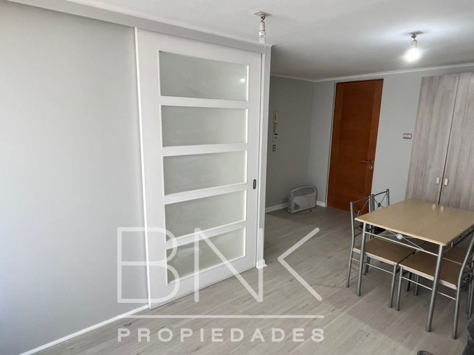 BNK Propiedades arrienda departamento recién remodelado ubicado en Vicuña Mackenna frente canal Mega. 33 m2 más balcón. Tercer piso, vista oriente, un dormitorio, un baño completo, cocina americana totalmente equipada, comedor, calefacción y agua caliente termoeléctrica. Excelente conectividad, cercano a líneas 5 y 6 del Metro. El edificio cuenta con seguridad 24/7, salón multiuso, lavandería, gimnasio, quinchos, piscina, estacionamientos de visita. Gastos comunes aprox. $65.000. Sin estacionamiento ni bodega.