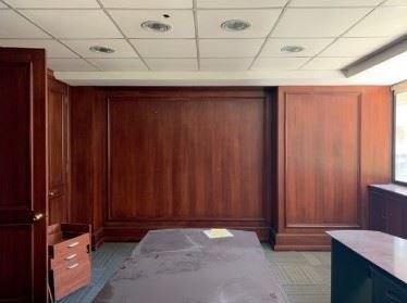 Oficina en 2 pisos conectados. Con 6 zonas de trabajo, 2 amplios privados, 4 salas de reunión y 10 baños. Todos los espacios iluminados naturalmente. Frente a edificio de tribunales. Ideal para oficina de Abogados