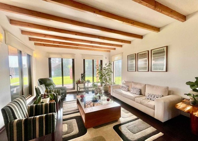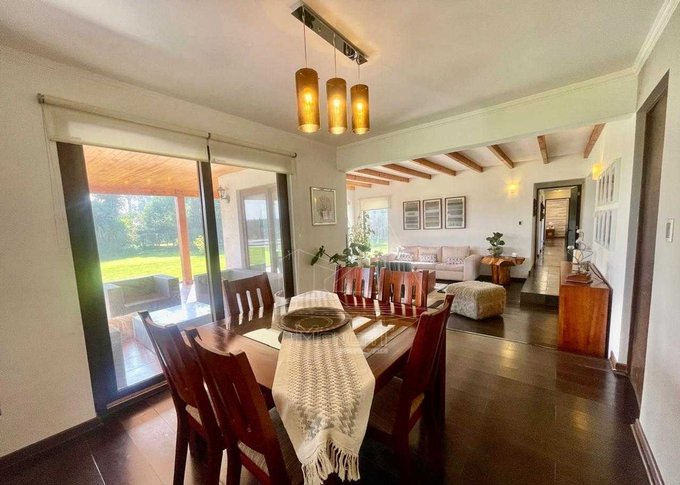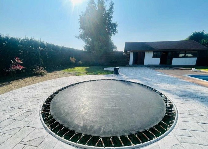Magnifica construcción sólida con 4 dormitorios y 5 baños en un Consolidado condominio, Con 300 metros cuadrados construidos en terreno de 5000 metros. Cuenta con una gran piscina, muy espacioso quincho con baño, cama saltarina empotrada y bodega.