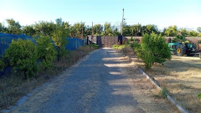Cuenta con porton de acceso de 4.30metros todo el frente con muro de albañileria, cerrado perimetral con malla y polines, cuenta con agua, luz electrica remarcador.