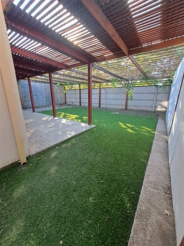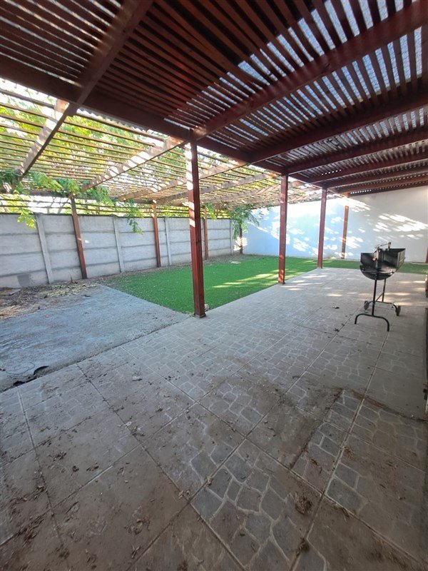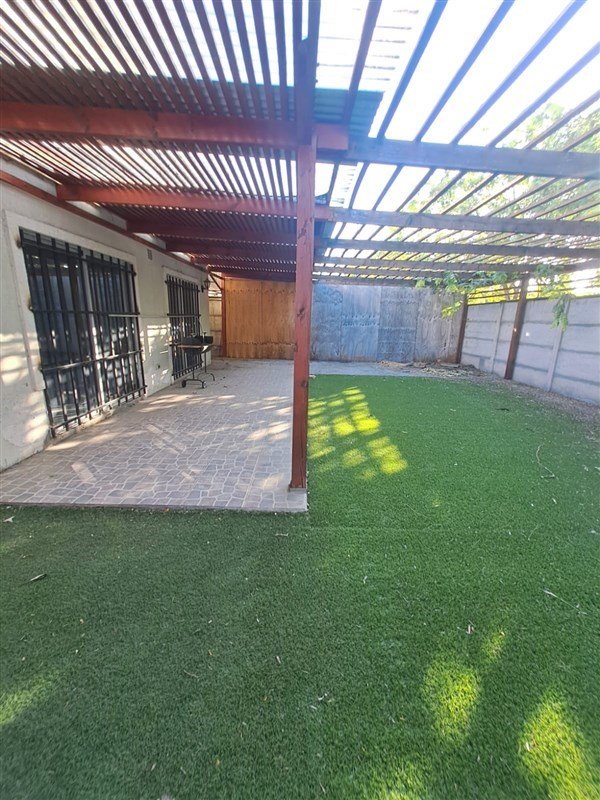 Patio-terraza posterior techado y con pasto sintético