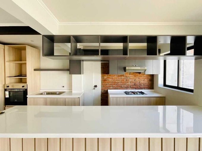 Cocina Americana equipada con encimera, horno y campana