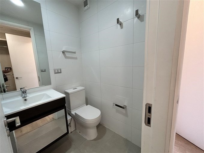 El baño, con acabados modernos y elegantes, crea un oasis de relajación. Equipado con accesorios contemporáneos y una ducha amplia, ofrece comodidad y funcionalidad para el día a día.