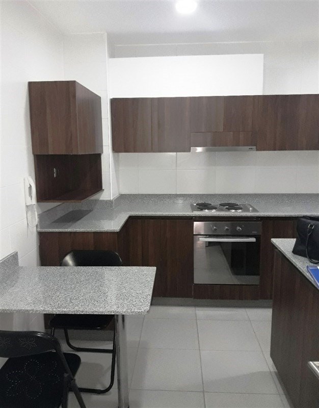- Cocina amoblada y equipada con horno, encimera y campana