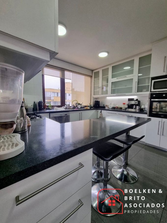 Cocina amoblada, encimera, horno y campana