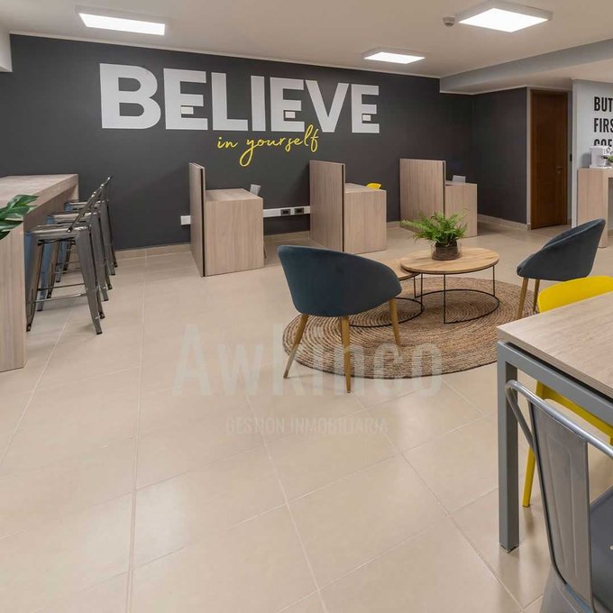 El edificio cuenta con work café, quincho, sala de eventos y estacionamiento para bicicletas. La construcción promueve la eficiencia energética con envolvente térmico y ventanas de termopanel.