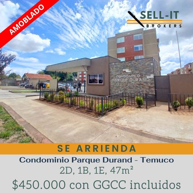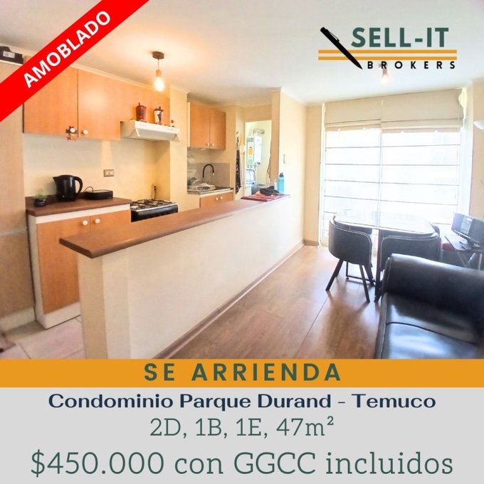 Si aun no encuentras arriendo esta puede ser tu oportunidad, SELL -It Brokers arrienda departamento amoblado con gastos comunes incluidos en el canon de arriendo ubicado en condominio Parque Durand en Avda Luis Durand, frente a INACAP.