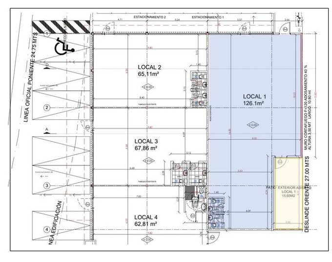 En Arriendo excelente local comercial en exclusivo centro comercial Corner Los Pablos, local en primera linea por los Pablos, de 126 m + patio exclusivo de 50 m con salida de servicio, cuenta con baños, doble altura, con factibilidad de cocina, terraza y tablero trifasico. Legar y habilitar. Disponible desde Octubre. Sin Gastos comunes .