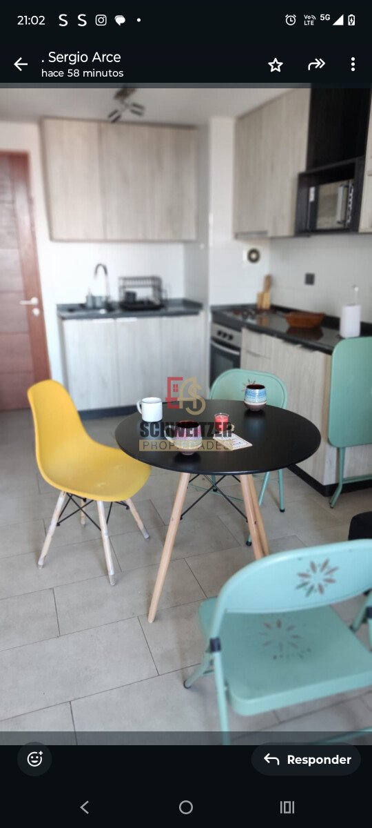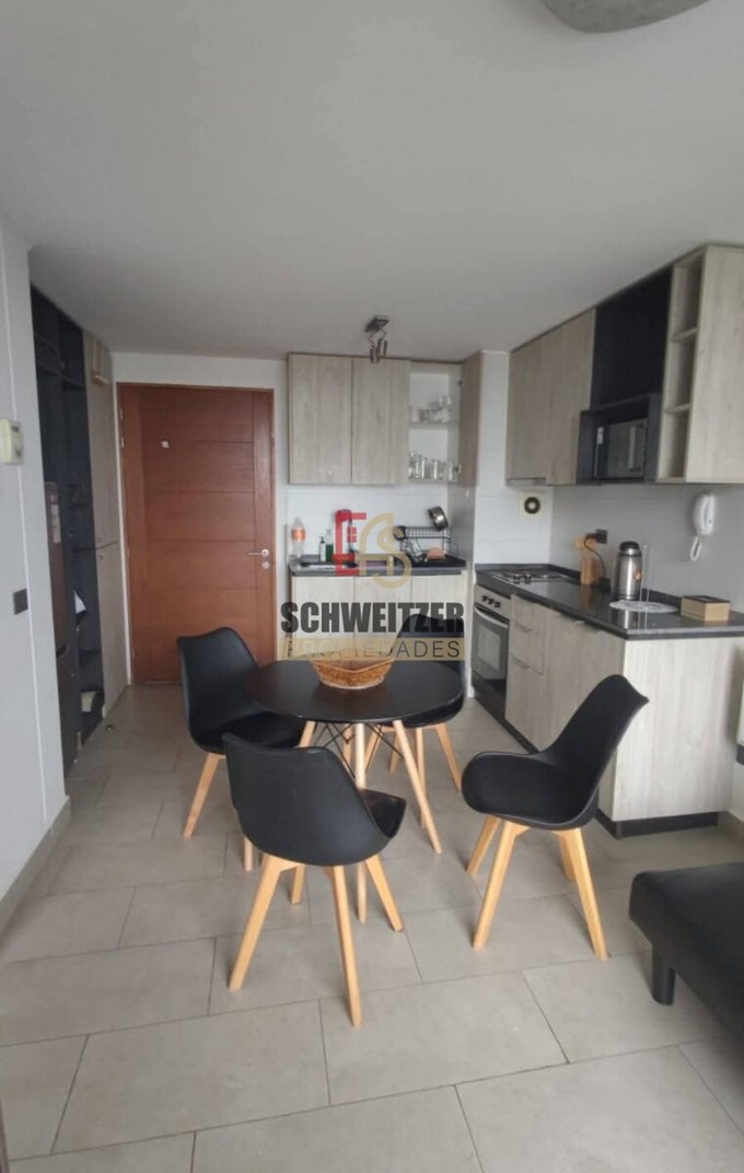 Cuenta con 1 dormitorio con cama de 2 plazas y closet, baño en suite, living y cocina equipada encimera, horno eléctrico. Balcón