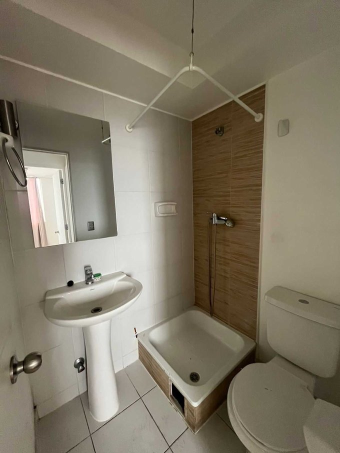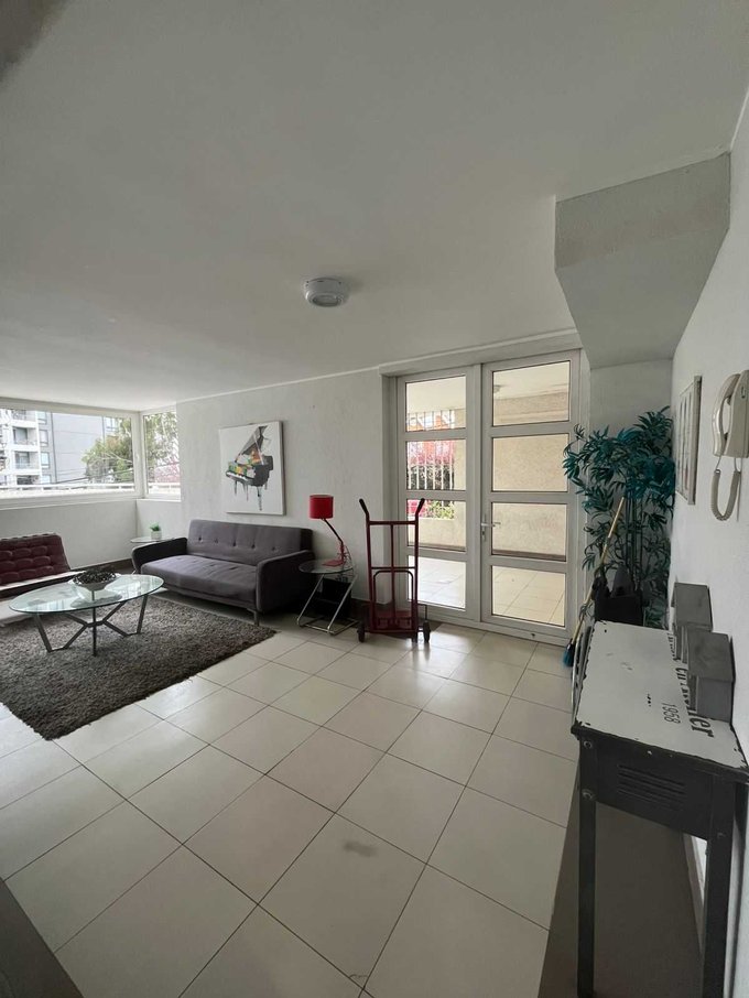 Departamento consta de acceso principal con living comedor jutnso, cocina integrada americana, con muebles de almacenaje, cubierta de granito, un dormitorio con closet y un baño frente con tina, y un dormitorio principal con baño y walking closet.
