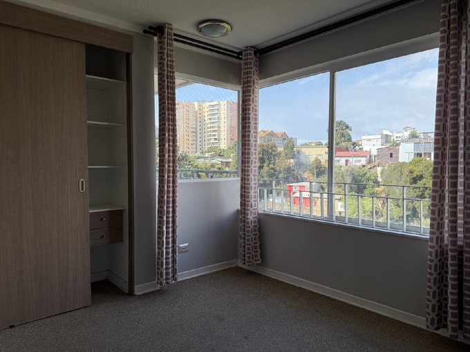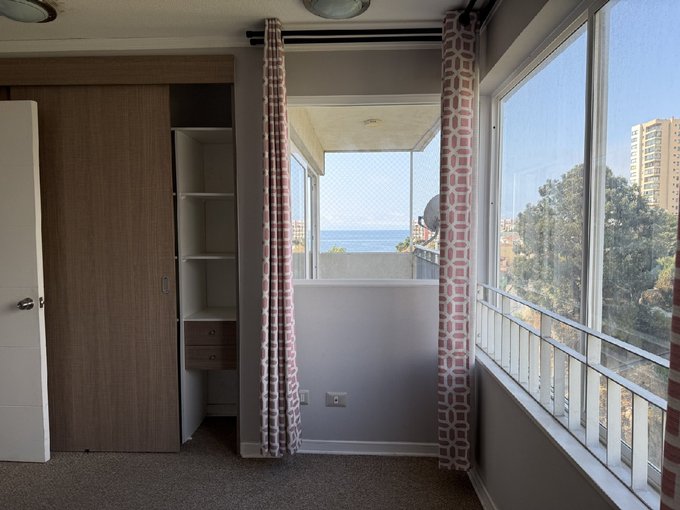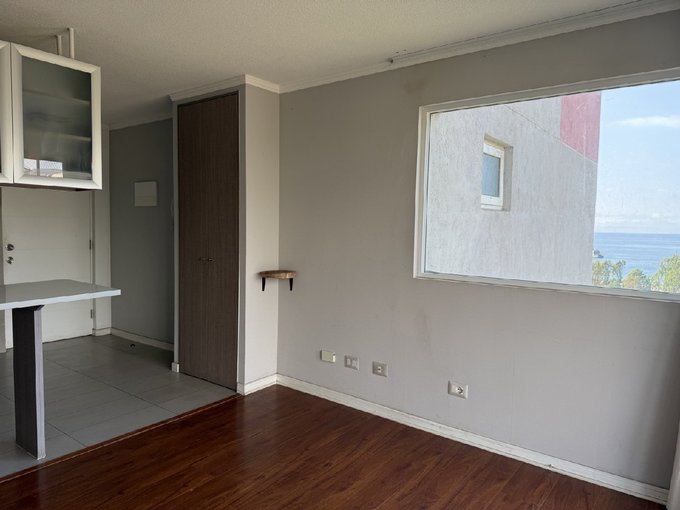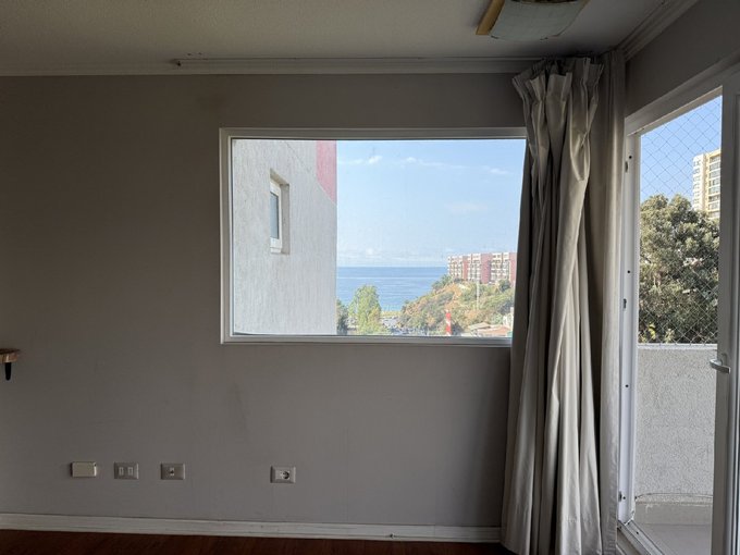 El departamento con disposición nororiente, tiene una terraza que permite disfrutar de una linda vista a la bahía de Valparaíso. Cuenta con cocina integrada y bien equipada, living bastante cómodo. Dos dormitorios de buen porte, 1 baño con ventilación natural. Conexión para lavadora en closet de pasillo.