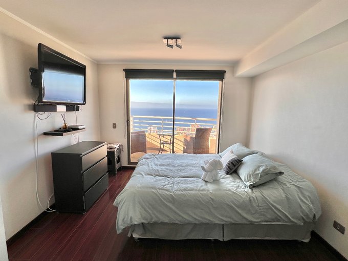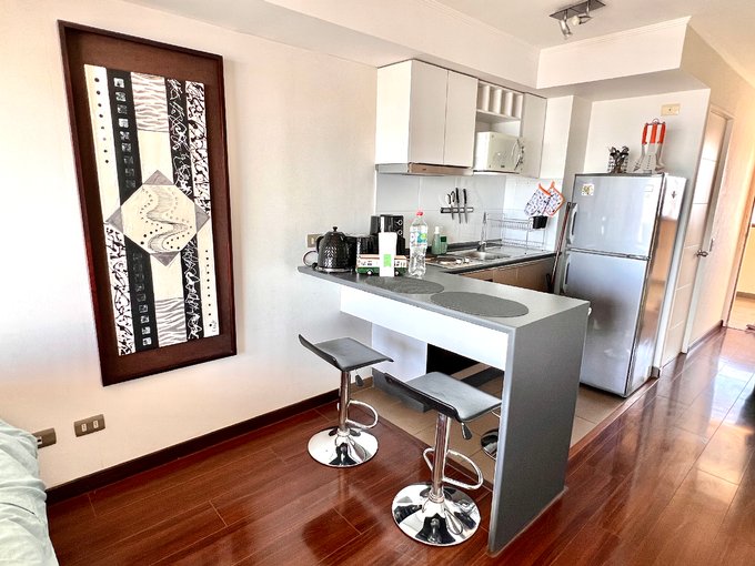 Se arrienda hermoso Loft con Vista al Mar, 1 ambiente, 1 baño, balcón, cocina equipada, amueblado. Incluye gasto común y estacionamiento.
