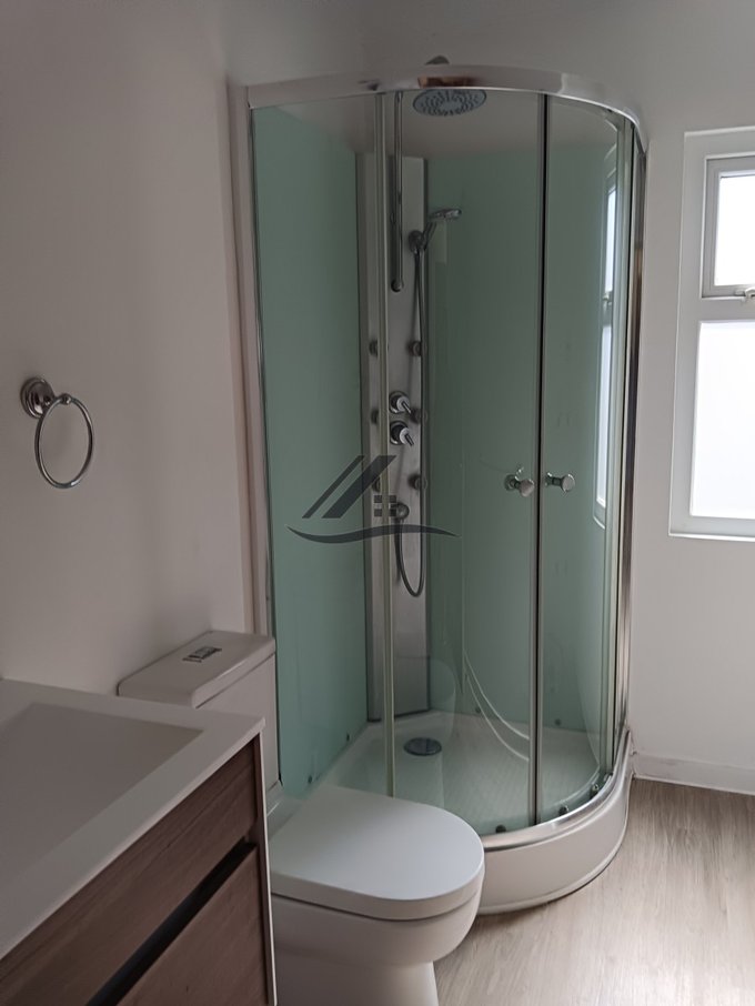 2 baños modernos, con vanitorios de diseño, ducha con hidromasaje y shower door
