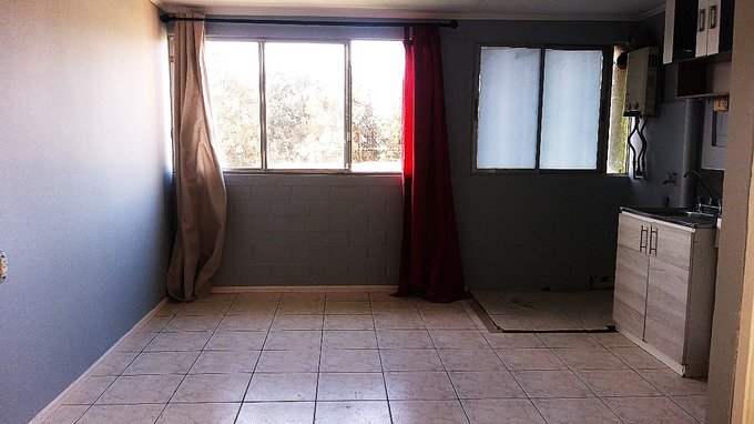 Arriendo departamento en tercer piso, este cuenta con living-comedor de buenas dimensiones, cocina americana amueblada, habitación matrimonial, un dormitorio y un baño completo. Acceso controlado con portones peatonales con llave.