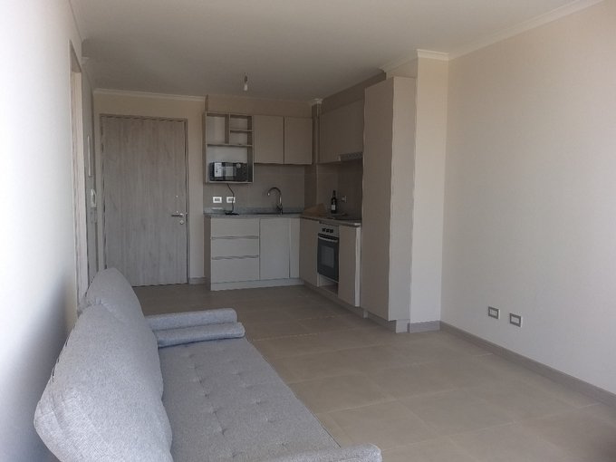 En arriendo departamento ubicado en un quinto piso con ascensor. Este cuenta con un living-comedor de muy cómodos espacios con acceso a balcón, cocina americana amueblada y equipada con horno eléctrico, microonda, encimera, campana. Juego de ollas y vajilla para cuatro personas. Un dormitorio con cama de dos plazas, closet, acceso a balcón, baño en suite con shower door. Condominio un muy bien ubicado con locomoción a la puerta, a muy pocas cuadras de estación MERVAL, colegios, jardines infantiles, negocios varios, pocas cuadras del centro. Edificio que cuenta con acceso controlado las 24/7, con conserjería, cámaras de vigilancia. Valor Incluye Gasto común.