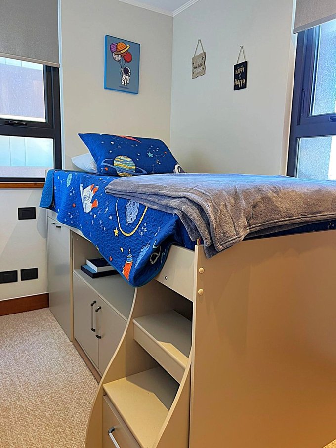 En medio de la magia del sur, arriendo año corrido en Nueva Puntilla: departamento full amoblado, ideal para disfrutar y vivir con comodidad todo el año. Ubicado en piso 6 de un edificio moderno (2023) con 10 niveles, ofrece 80 m totales, 3 dormitorios y 2 baños completos , distribuidos en 5 ambientes luminosos con orientación norponiente . Incluye estacionamiento vehicular y para embarcaciones y está impecablemente equipado para llegar y instalarte.