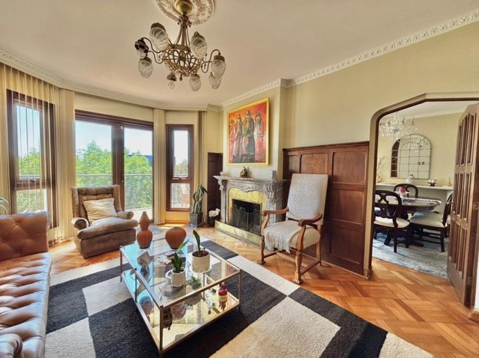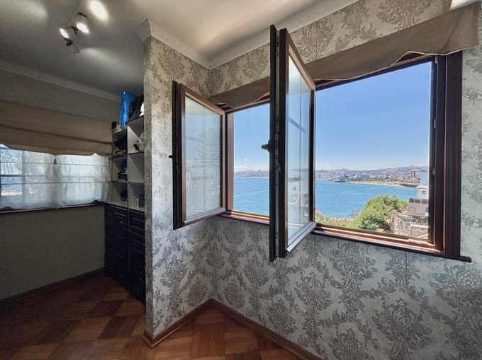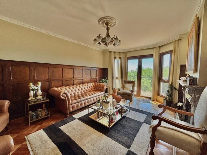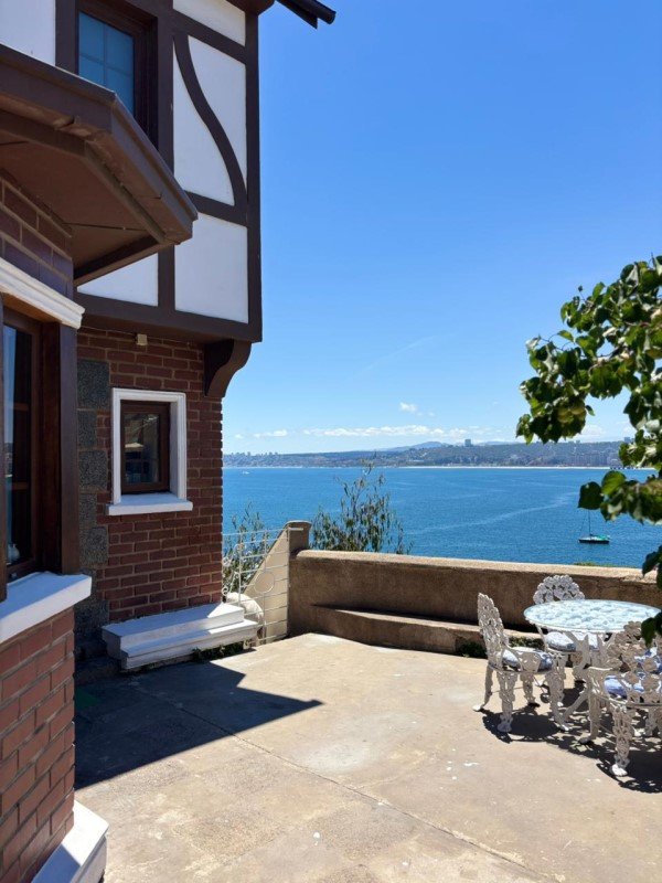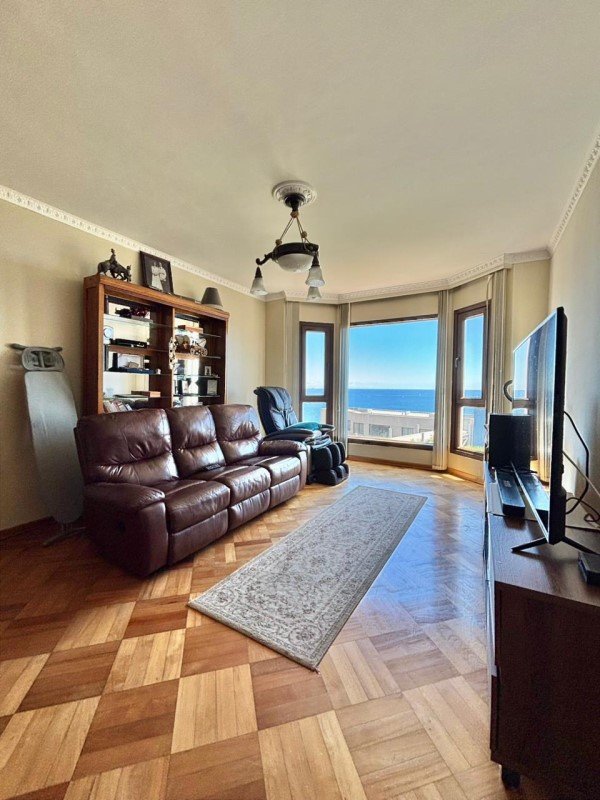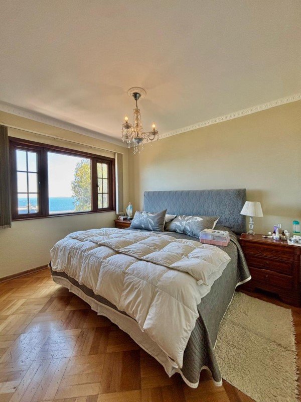 Elegante hall de entrada, baño de visitas, amplio living con chimenea de mármol y salida a terraza con vista verde y al mar. Comedor separado. Cocina independiente, amplia y totalmente remodelada, con comedor de diario y loggia.