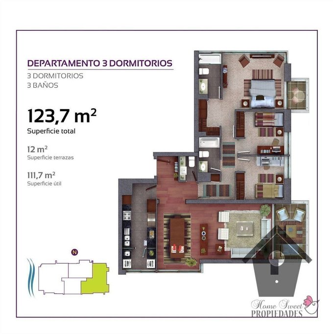 Caracteristicas: Balcón, Estacionamiento techado, Terraza, Acceso para personas con discapacidad, Ascensor, Calefacción, Portero, Seguridad 24 Horas, No se aceptan mascotas