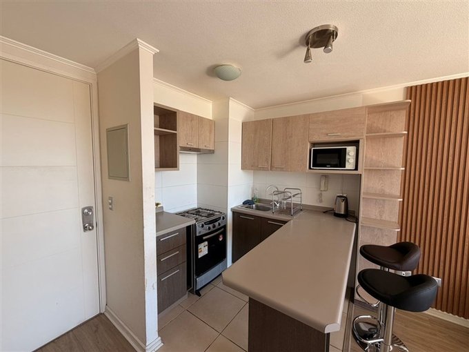 - Cocina americana amoblada, cocina tradicional, microondas, refrigerador