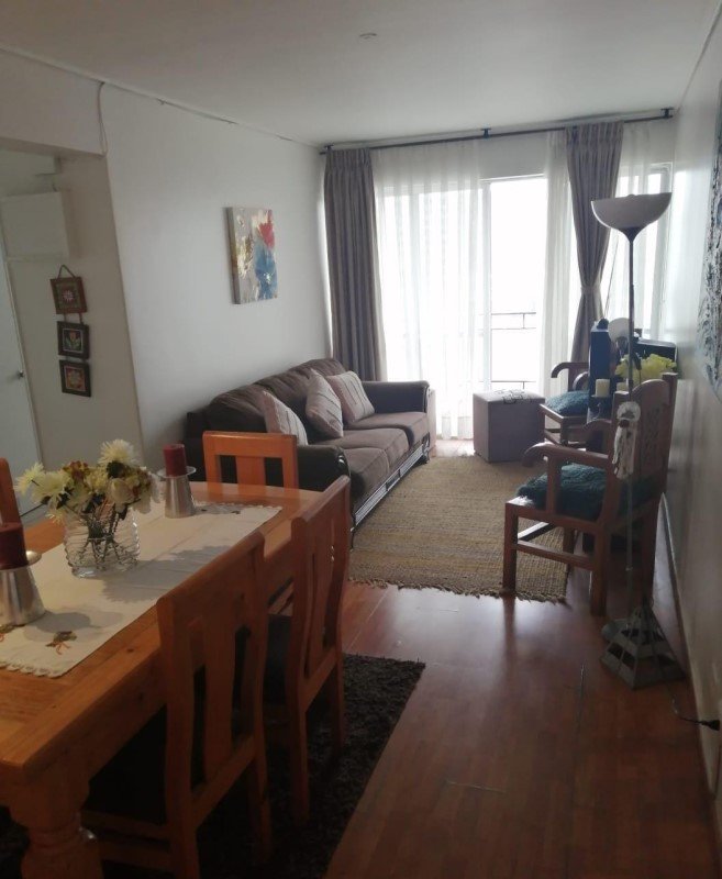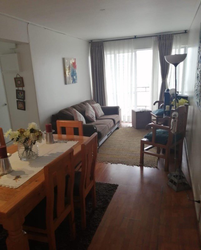 Se arrienda departamento amoblado, posee 2 dormitorios, ambos con cama matrimonial, 2 baños, pequeño balcón, amplia cocina, amoblado para 4 personas, piso flotante, agua caliente por caldera.